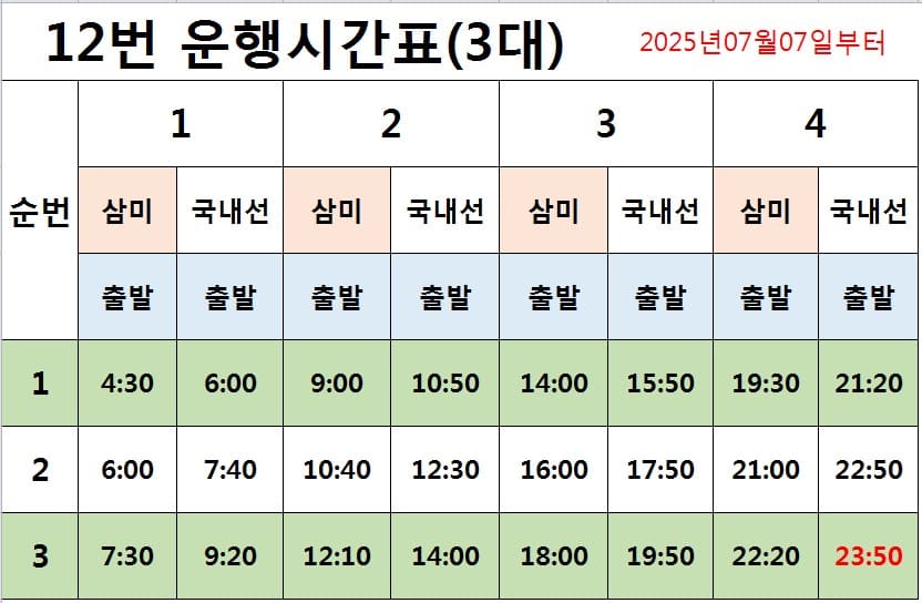 ▶ 12번 시간표 / Time Table ( 출처 : 시흥교통 http://www.shbus.net/ )