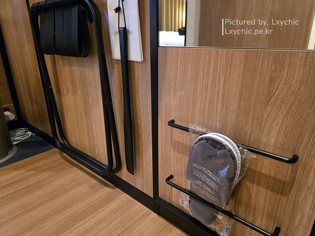 슬리퍼는 기본으로 들어가 있구여 옷걸이도 여유롭게 비치되어 있었습니다