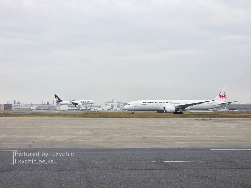 택싱하는 788이랑 랜딩하는 스카이마크 738