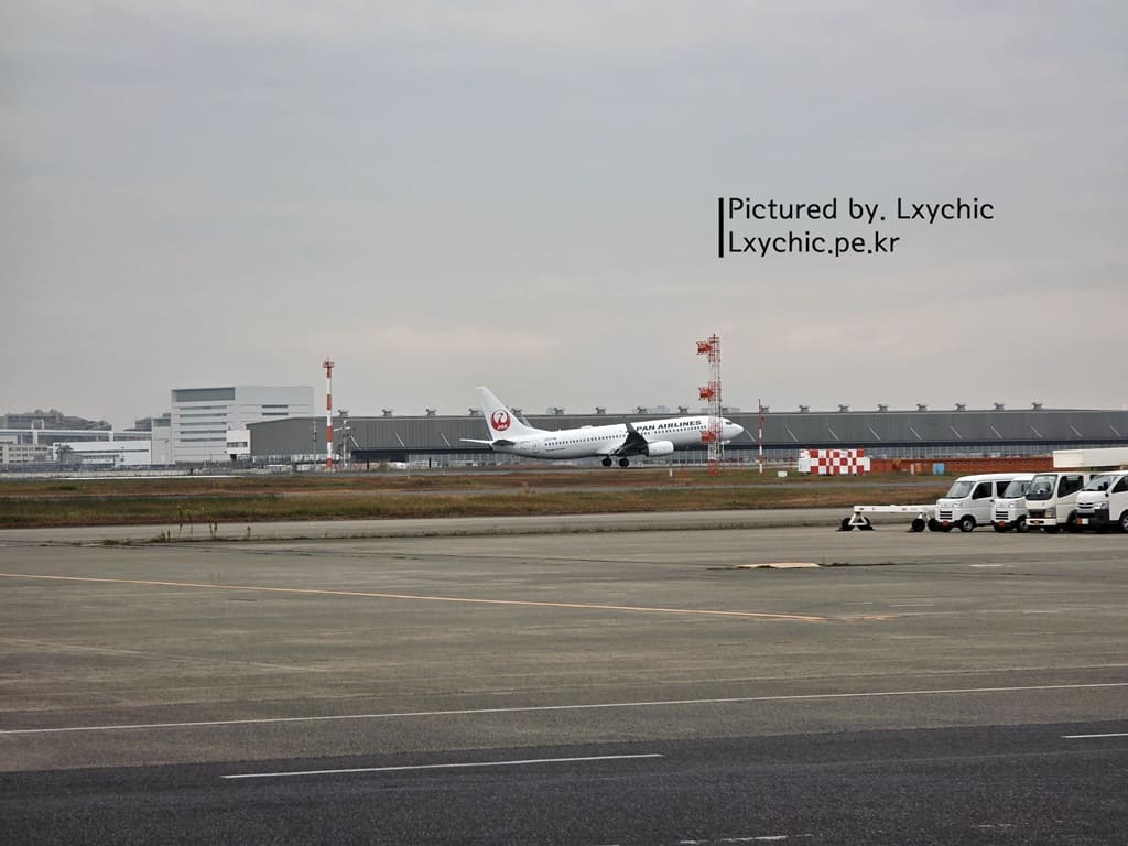 생각보다 터치다운 포인트 벗어난거 같은 일본항공 738