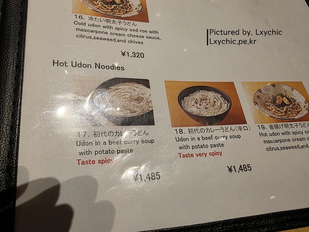 크림카레우동 매운맛 등판 가격은 1485엔입니다